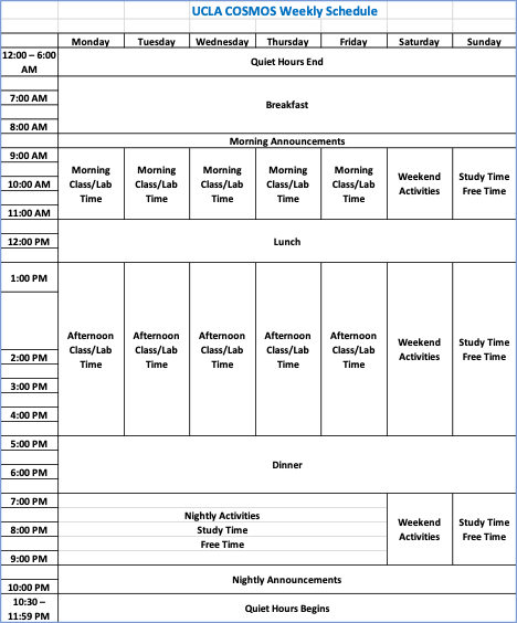 UCLA COSMOS students are admitted into one of the program’s clusters for the duration of the program. Each cluster focuses on a specific topic within engineering, mathematics, or science with specialized curriculum designed by university professors in a variety of fields. A typical cluster consists of 20-28 students. For cluster topics, descriptions, and information, please visit our Cluster page.